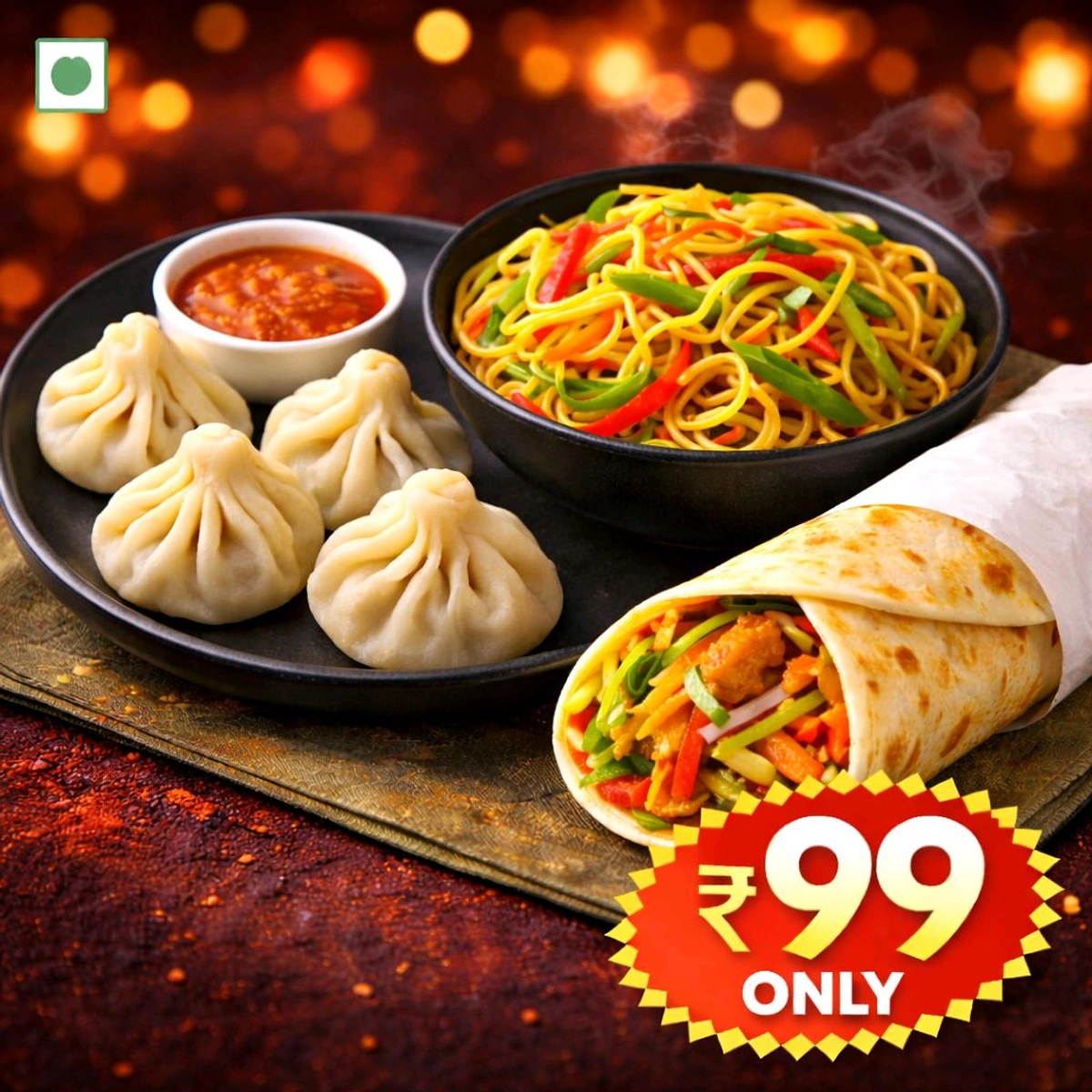 Bhoj Combo - Veg Momo (4PCS) + Chowmin + Roll @GKB Special